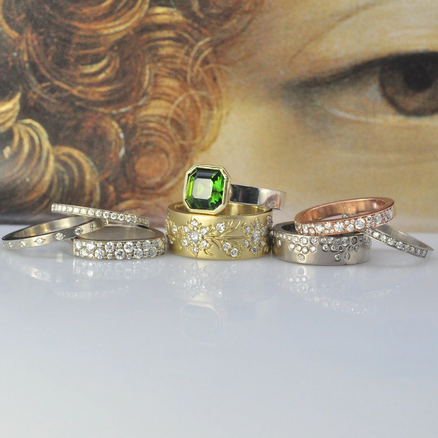 Exclusively handcrafted, authentically yours. Ceremonial rings are more than adornment; they are a tangible link to something more personal. Choose from our selection of stunning rings or sit down with Rebecca and co-create unique pieces that speak to the heart and to your cherished journey as a couple. Our rings are designed to be powerful touchstones, each piece thoughtfully imbued with personal meaning.