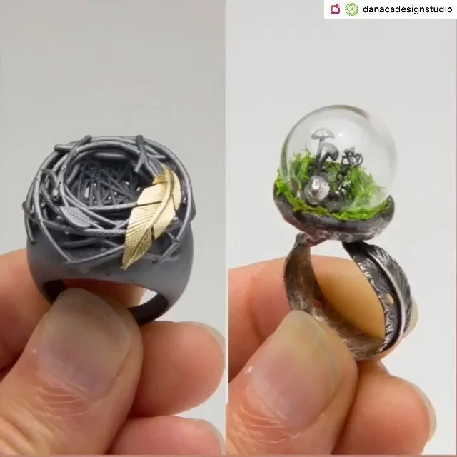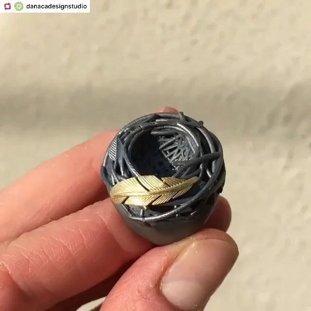 Sublime beauty can be found in natural forms and patterns. Rebecca Myers' work is an exploration in layering metal, constructing form and sprinkling sparkle to achieve the natural patterns and forms that are awe inspiring to all of us. High Karat gold, platinum and oxidized silver are often combined to achieve the dichotomy of dark and light found in many patterns in nature.